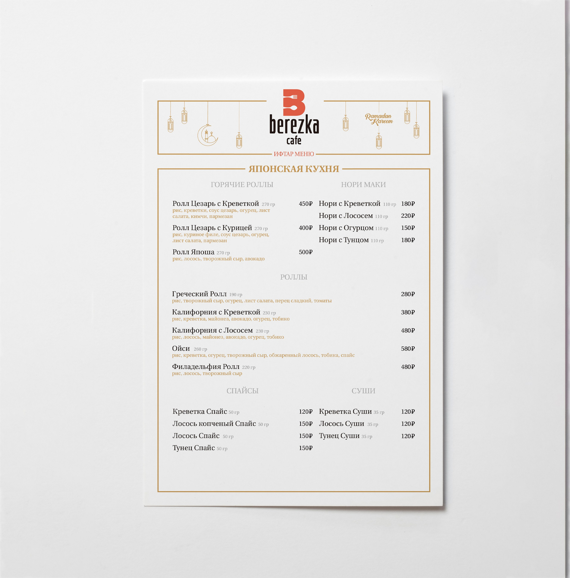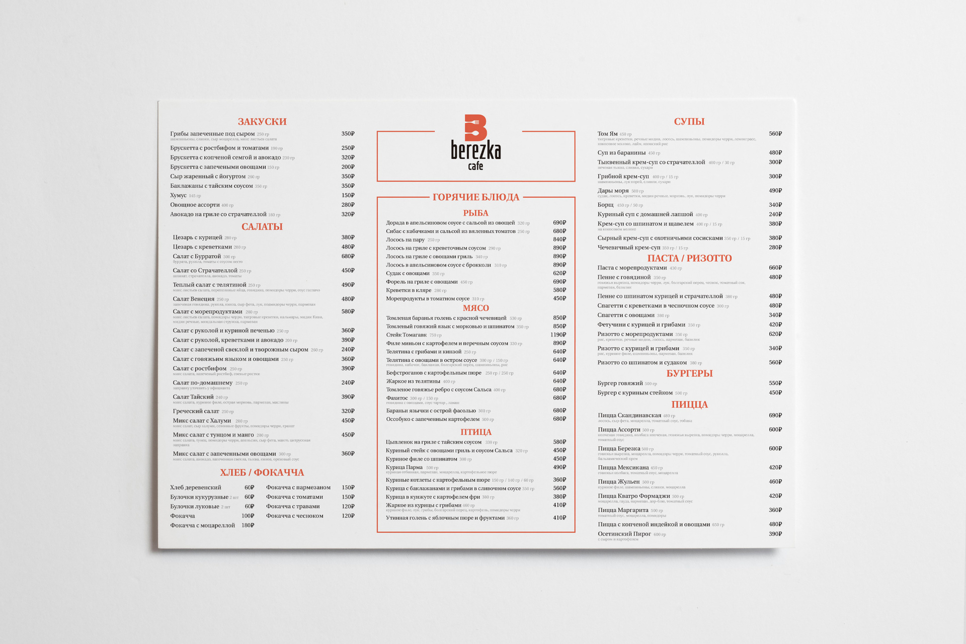 Печатный вариант меню А3 и А4 формата